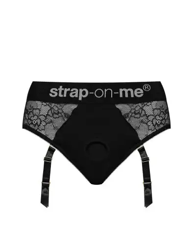 Кружевные трусы для страпона с подвязками для чулок Strap-On-Me DIVA HARNESS - XL