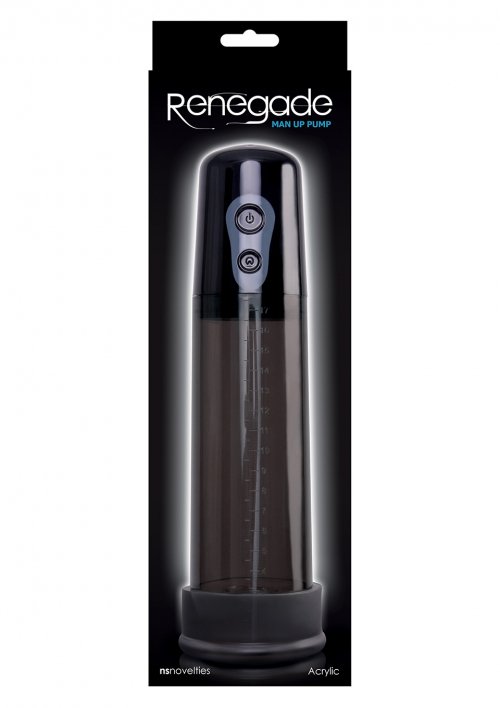 Renegade Man Up Pump Black производства американской торговой марки NS Novelties представляет собой уникальное автоматизированное приспособление, благодаря применению которого удается улучшить процесс кровообращения в органах малого таза и усилить эрекцию. Вам нужно всего лишь поместить пенис внутрь колбы, нажать кнопку активации девайса и получить наслаждение. Для удобства использования и предупреждения появления ощущения дискомфорта рекомендовано применение водных лубрикантов.