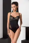 Корсет с декольте ERZA CORSET black L/XL - Passion, пажи, трусики, полупрозрачный